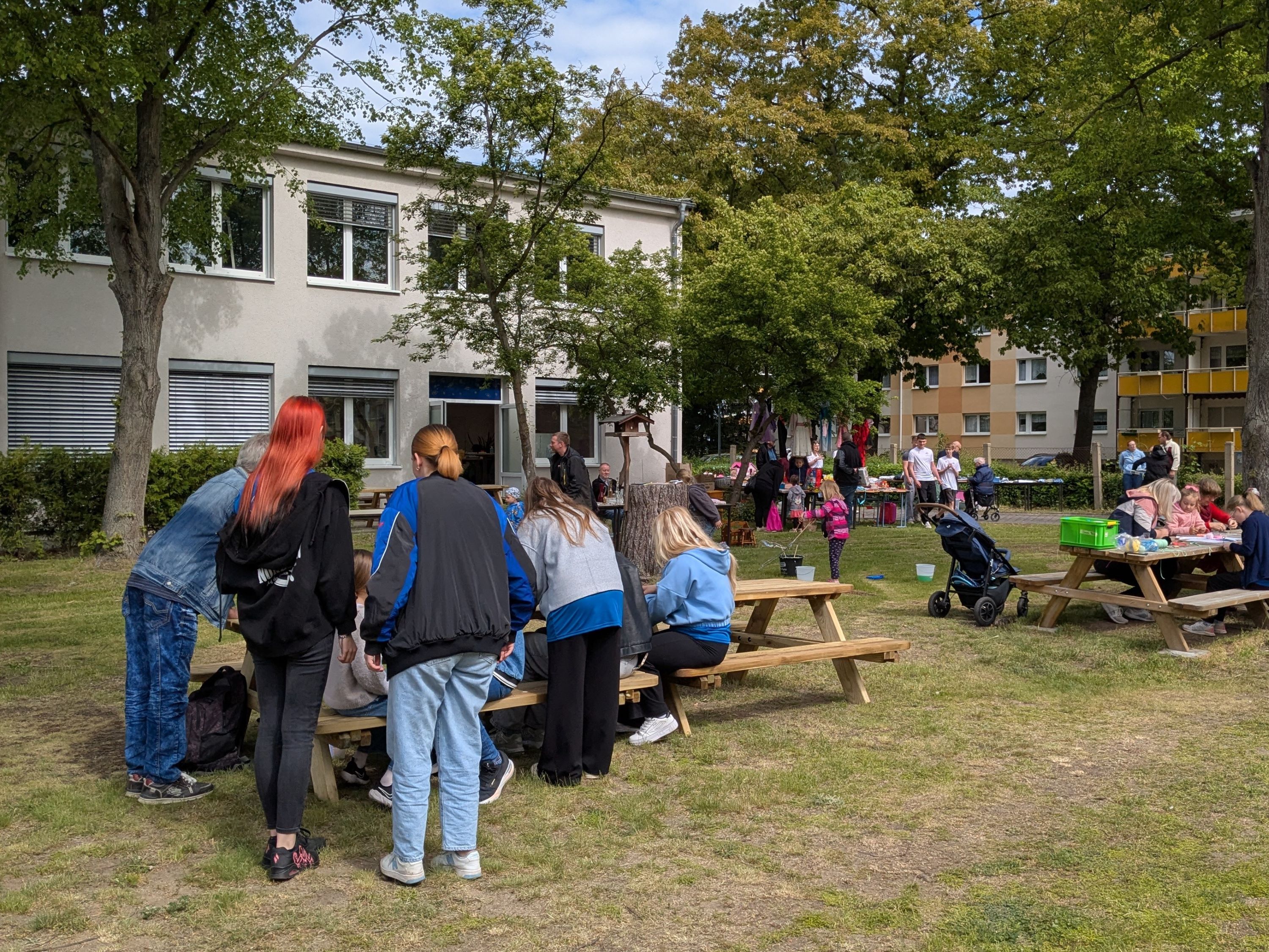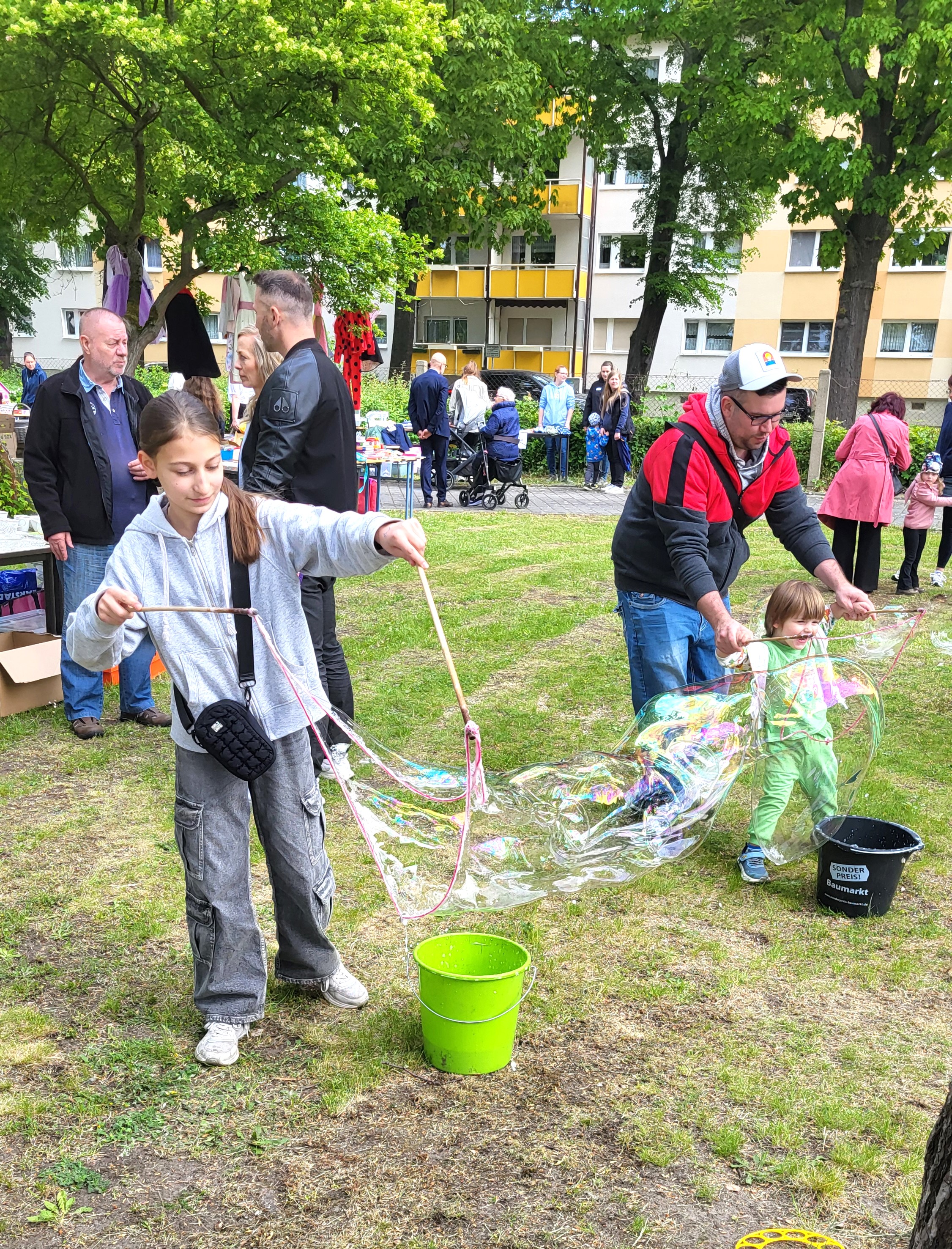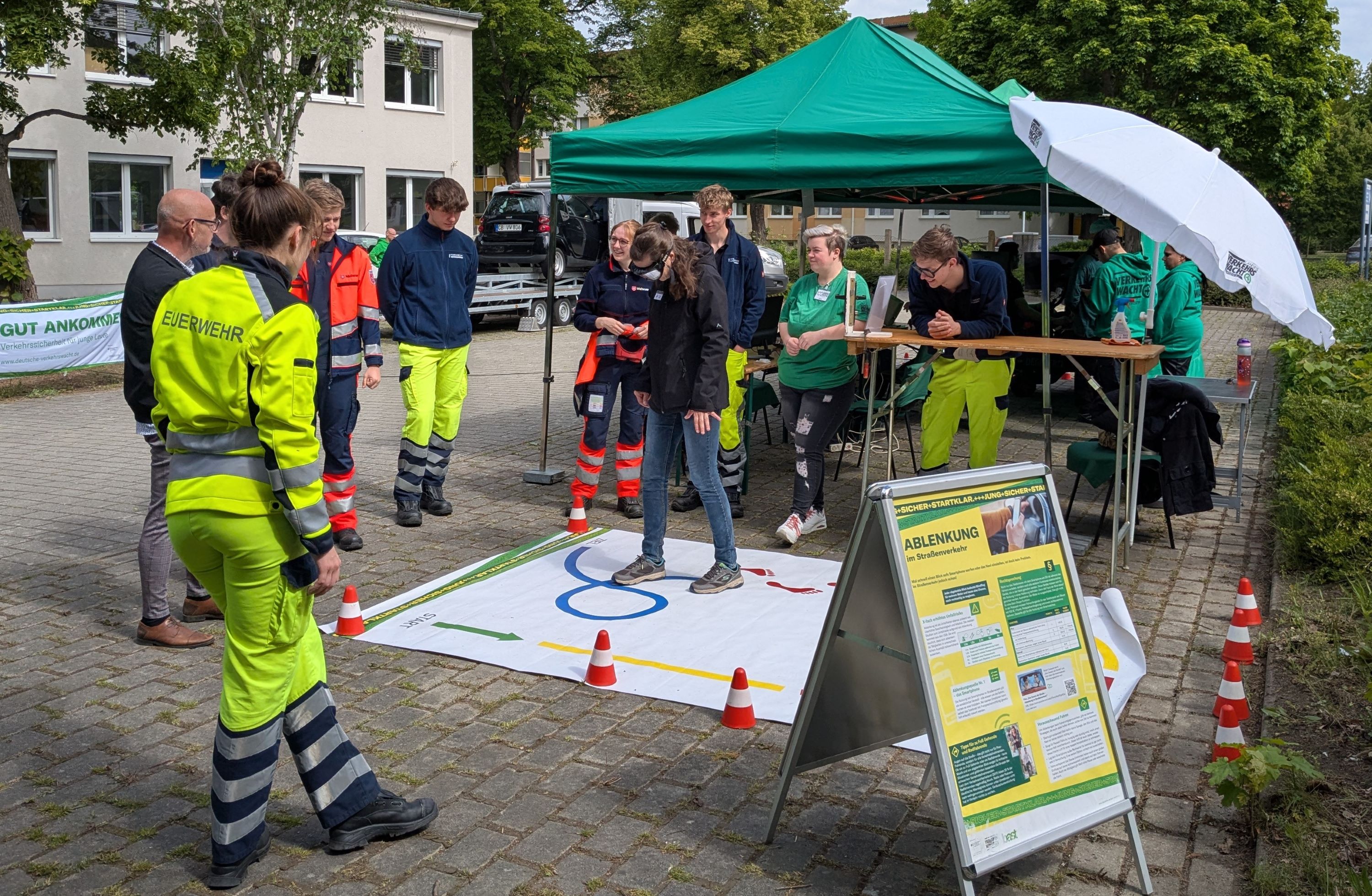 Das Außengelände bot viel Abwechslung. Kinder wurden geschminkt oder konnten sich an übergroßen Seifenblasen erfreuen. Die Flohmarktstände kamen gut an. Eine Menge konnte man bei den Mitarbeitern der Verkehrswacht Hoyerswerda testen, zum Beispiel im Überschlagssimulator.
